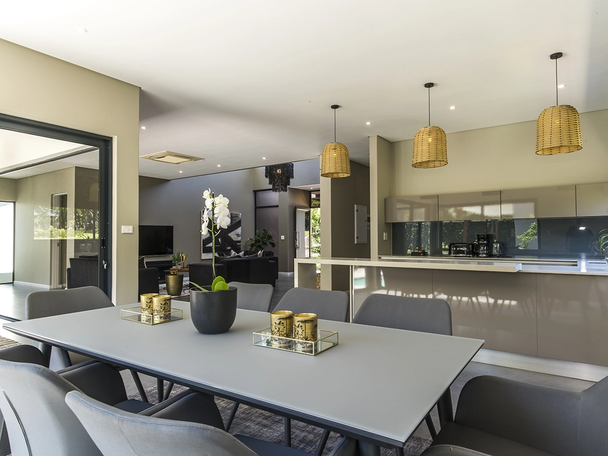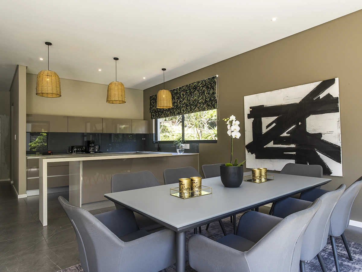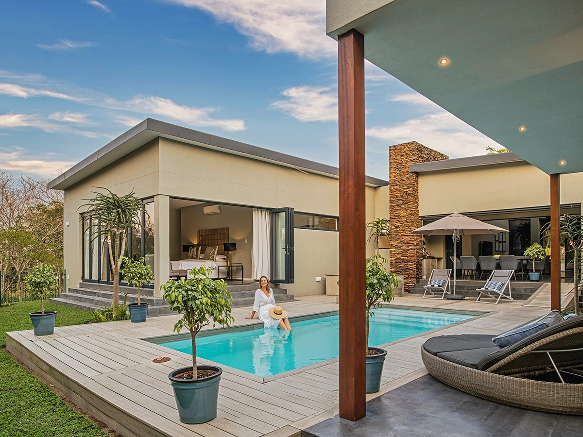 Villa Rainbow is a vibrant retreat designed for effortless entertaining in the secure Eden Rock Forest Estate, Pennington. Perfect for up to 8 adults and 2 children, this luxurious home features four stylish bedrooms, each opening onto a central pool, Jacuzzi, and entertainment area. The open-plan living space includes a fully equipped kitchen, an 8-seater dining area, and a cosy lounge with Smart TV, DStv, and Wi-Fi. Outside, an expansive wooden deck overlooks the lush Selborne Golf Estate, complete with a sparkling pool, sun loungers, and braai facilities. With 24-hour security, backup utilities, and a prime location near beaches and restaurants, Villa Rainbow promises unforgettable coastal gatherings.